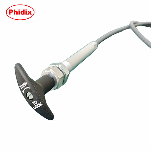 Sobald die gewünschte Steuerungsposition erreicht ist, aktiviert das Drehen des Griffs den eingebauten Verriegelungsmechanismus, der weitere Bewegungen des Kabels verhindert. Durch Entriegeln des Griffs wird die freie Bewegung wiederhergestellt, wodurch eine einfache Neupositionierung ermöglicht wird. Dies gewährleistet einen stabilen Betrieb, verbesserte Sicherheit und präzise Steuerung in vibrationsanfälligen und mobilen Anwendungen.